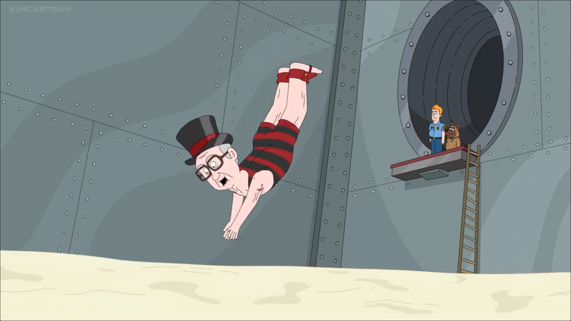 In "How the Cookie Crumbles", Stanley Hopson said that he created an alter-ego named "Splooge McDuck" and prepared for a cutaway gag, where he'd dive into a bank vault full of jizz. However, Randall was so opposed to this joke that he fired him from the show. However, Kevin and Bullet brought him back, needing him to give a bunch of jizz to the sperm bank they just robbed and Hopson followed through with doing his dumb cutaway gag in all its glory, while Randall sat and watched.