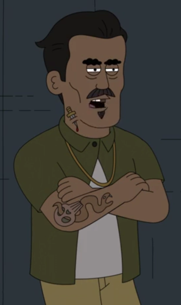 Pedro Pooptooth is a stereotypical Colombian drug-dealer, who lurks around the streets of Paradise, selling heroin for money. He can be very threatening and intimidating, usually resorting to violence and threats to keep the other dealers in check. Pedro's weapon of choice is his trusty dagger, which he uses to fight off his enemies in a pinch. He's also a bit of a pyromaniac and enjoys lighting things on fire, which also comes in handy for his career as a street-fighting hoodrat. Pedro doesn't like his own name, believing "Pedro" to be too ethnic. He would later change his name to "Peter" to help him to better assimilate into white culture but this was abandoned in later episodes.