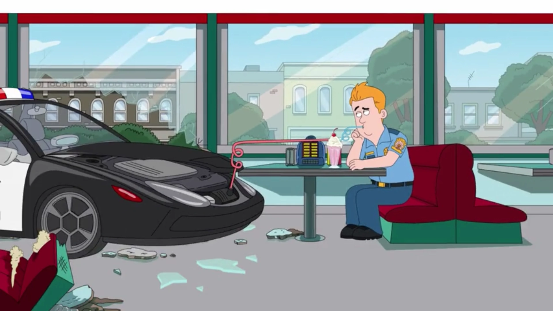 Black and Blue | Gerald shoots himself in the leg, and goes viral on every politically-biased news outlet on television. Liberal news networks call him a racist cop, who shot a black man, and Conservative networks call him a black thug, who got rightfully shot by a cop. Meanwhile, Hopson gets sent to a retirement home. |