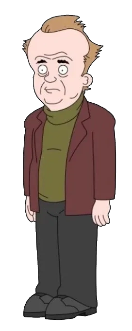 Thester is a short, adult Caucasian middle-aged man with sallow skin and thinning murky blond hair that looks like Count Olaf's. He wears a fecal green turtleneck, a maroon jacket, dark gray pants, and black shoes.